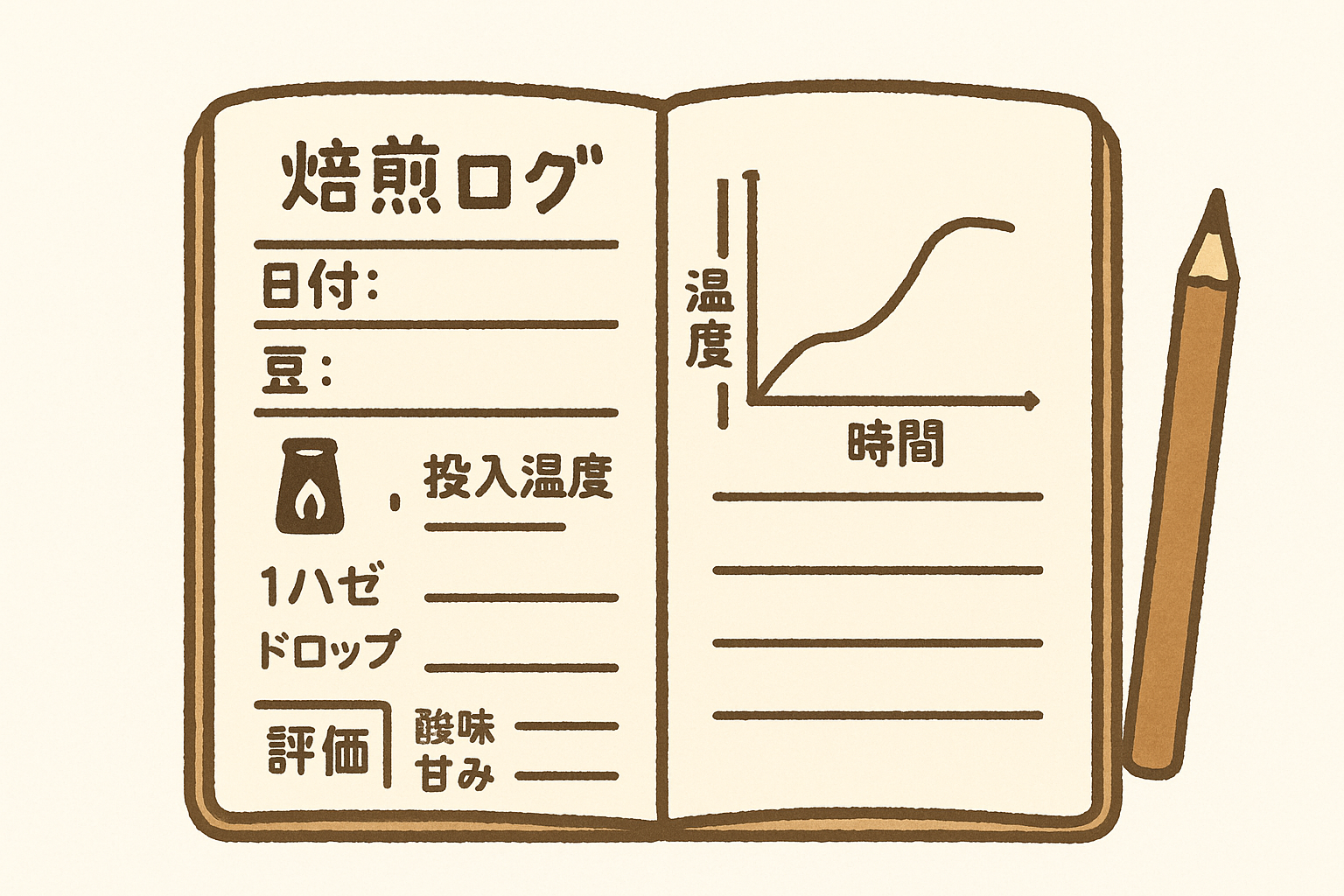 手書きの焙煎ログとは、焙煎中の温度や時間、操作、感覚的な気づきを紙のノートやログシートに書き残す方法です。